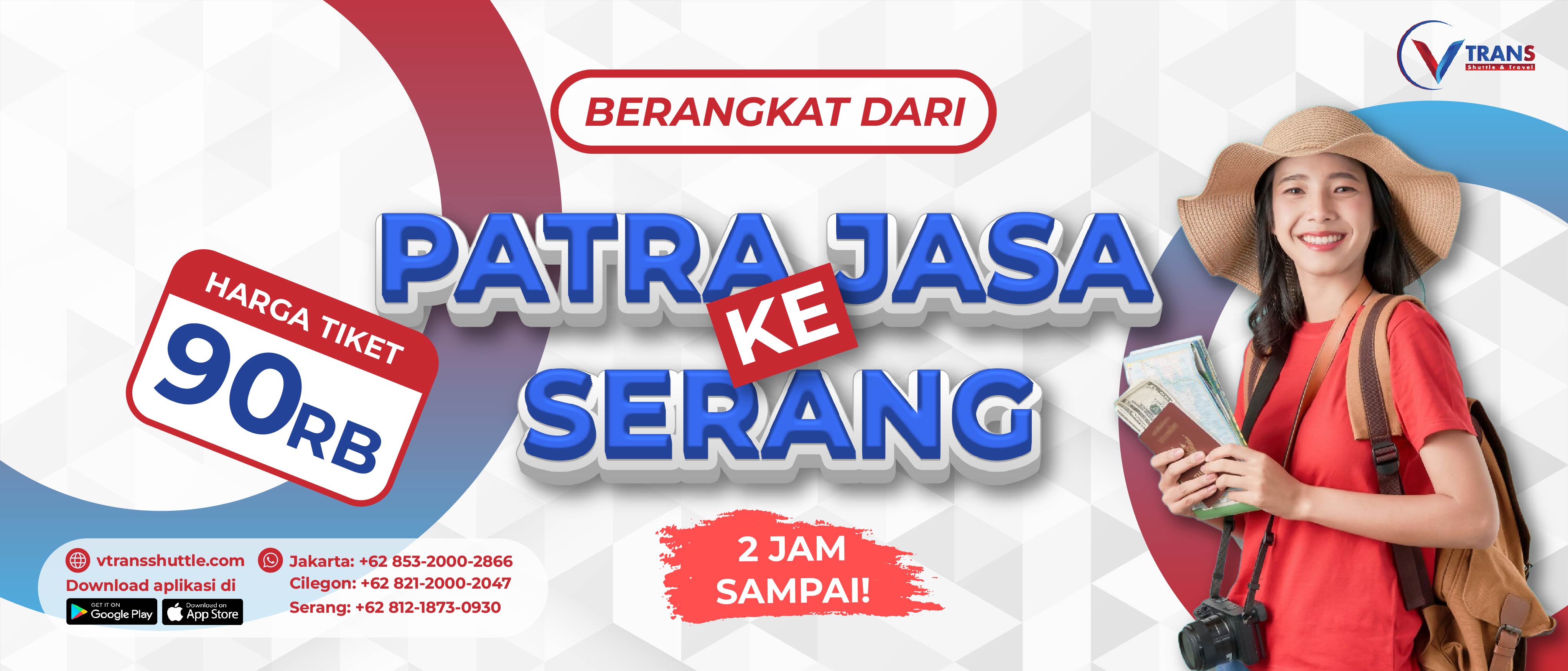 Jika Anda mencari perjalanan cepat, nyaman, dan terjangkau dari Patra Jasa ke Serang, VTrans Shuttle adalah pilihan terbaik! Dengan harga tiket hanya Rp90.000, Anda bisa menikmati perjalanan langsung selama 2 jam.